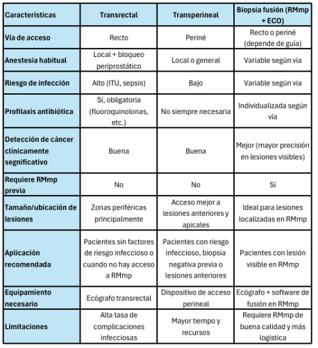 – **Pacientes en vigilancia activa:** Para seguimiento histológico, la vía transperineal minimiza el riesgo acumulativo de infecciones.
