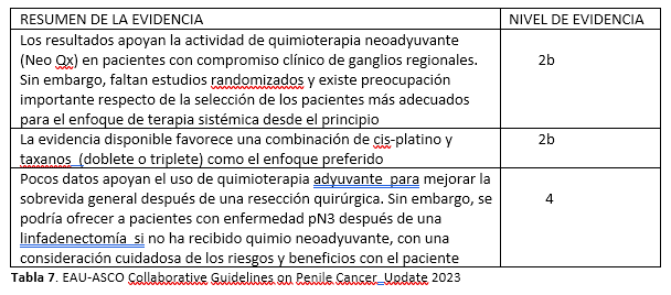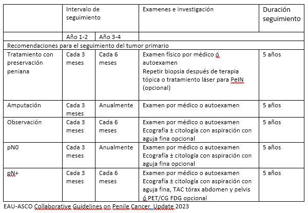Tabla 4. EAU/ASCO Collaborative Guidelines on Penile Cancer 2023