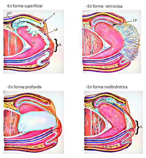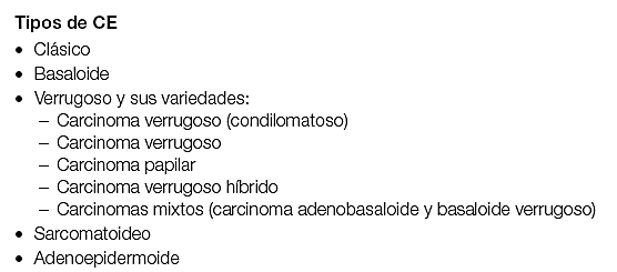 Dentro del carcinoma epidermoide existen diferentes variedades de presentación: