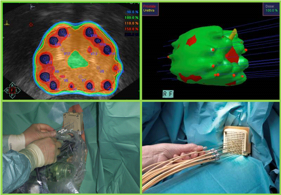 Fig. 4. Braquiterapia de Alta Tasa de Dosis. Se insertan agujas que se cargan posteriormente con iridio.(Imagen de Mayo Foundation)